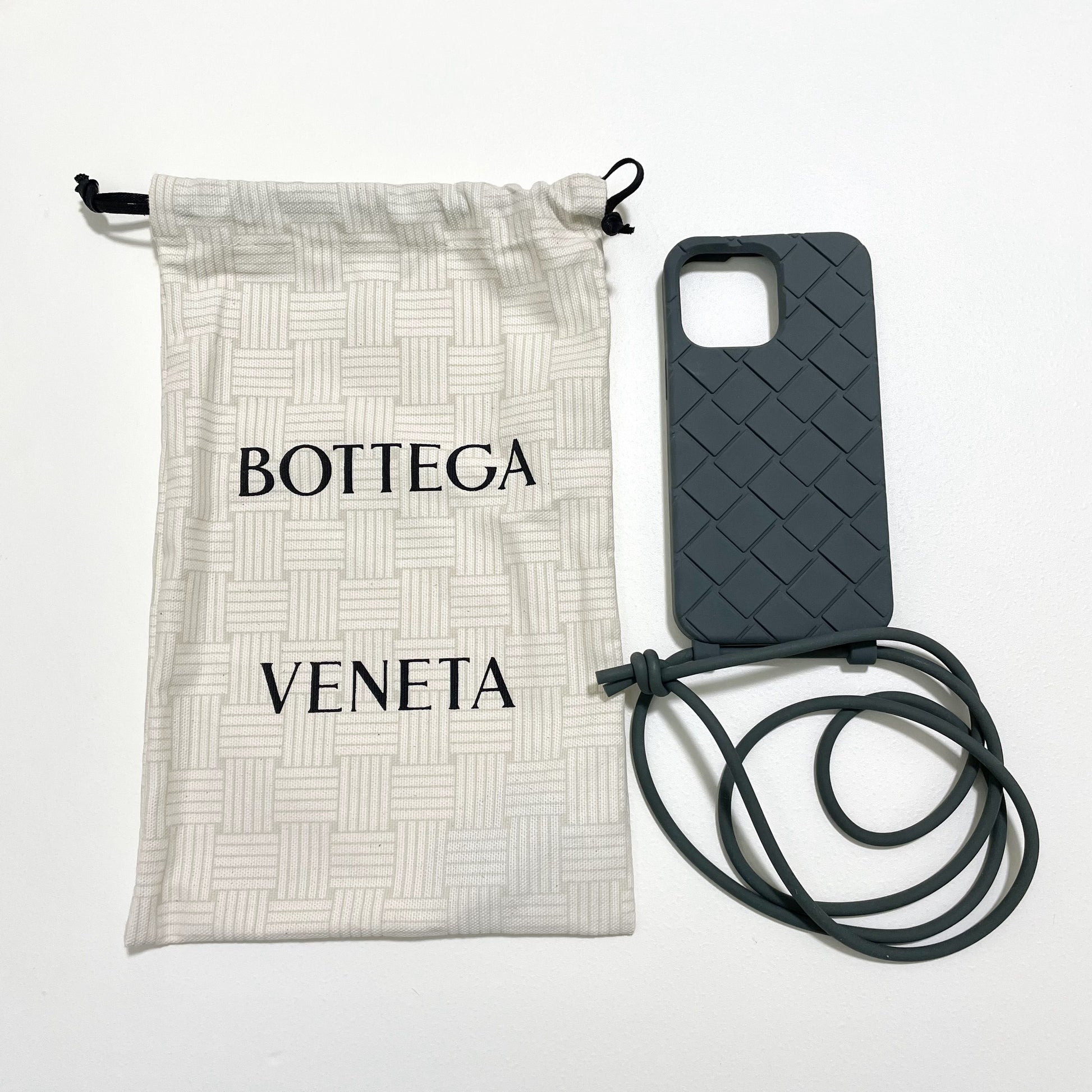 ボッテガ・ヴェネタを象徴するイントレチャートデザインを施した、iPhone14 Pro Max対応のスマホケースです。ラバーシリコン素材を使用しており、手に馴染みやすく日常使いしやすい仕上がり。ストラップ付きで、持ち運びにも便利です。内側にはブランドロゴの刻印が施され、さりげない高級感を楽しめるアイテムです。落ち着いたスレートカラー(グレー)が上品な印象を与え、性別を問わずお使いいただけます。