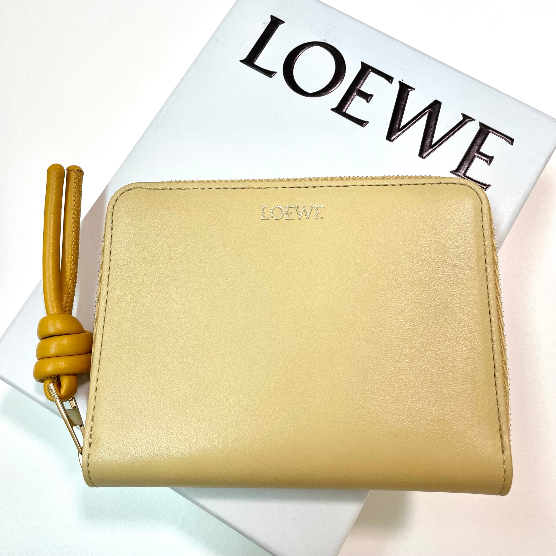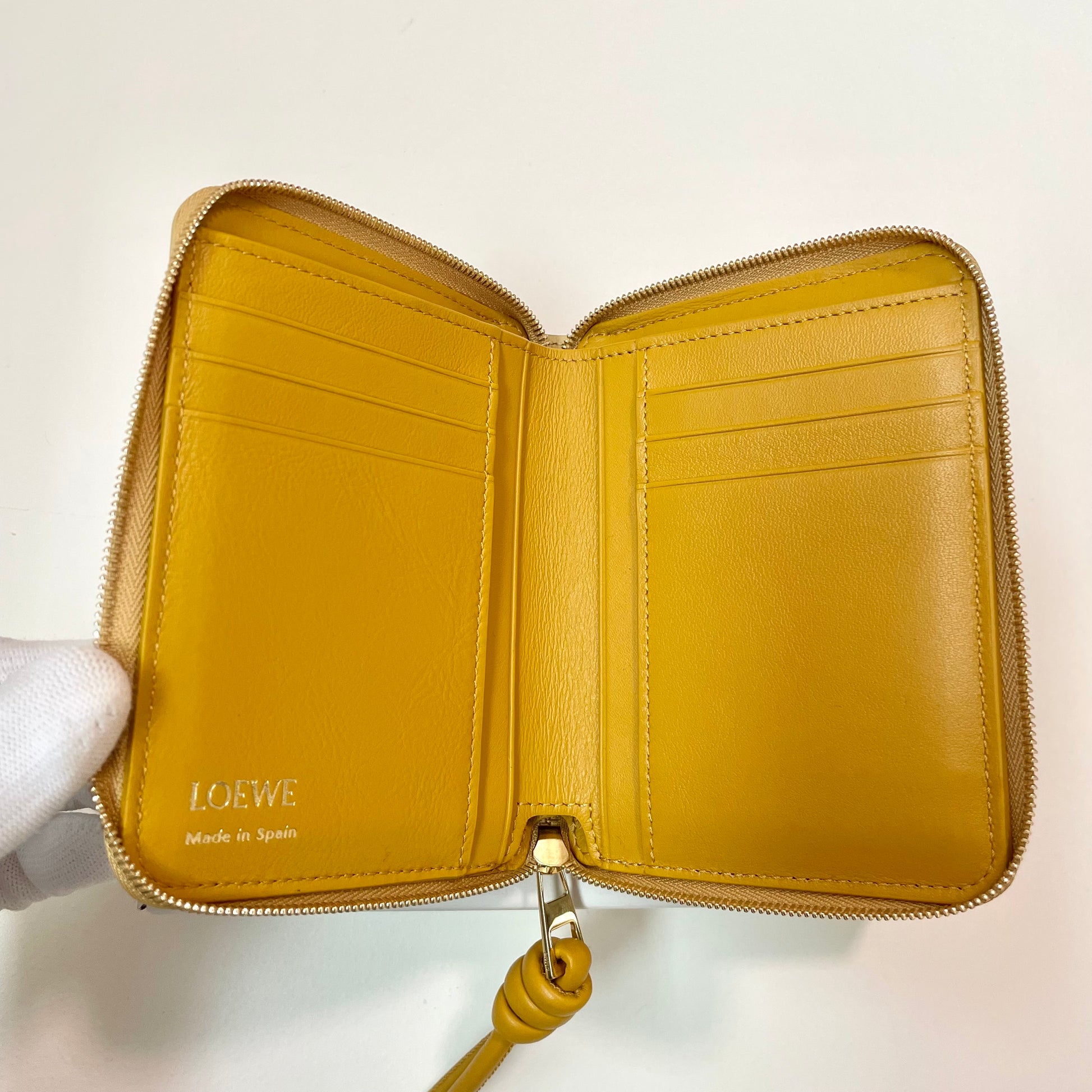 LOEWE ロエベ 財布 ウォレット ノット コンパクト ジップアラウンドレディース シャイニーナパカーフ 黄 イエロー ミニ財布