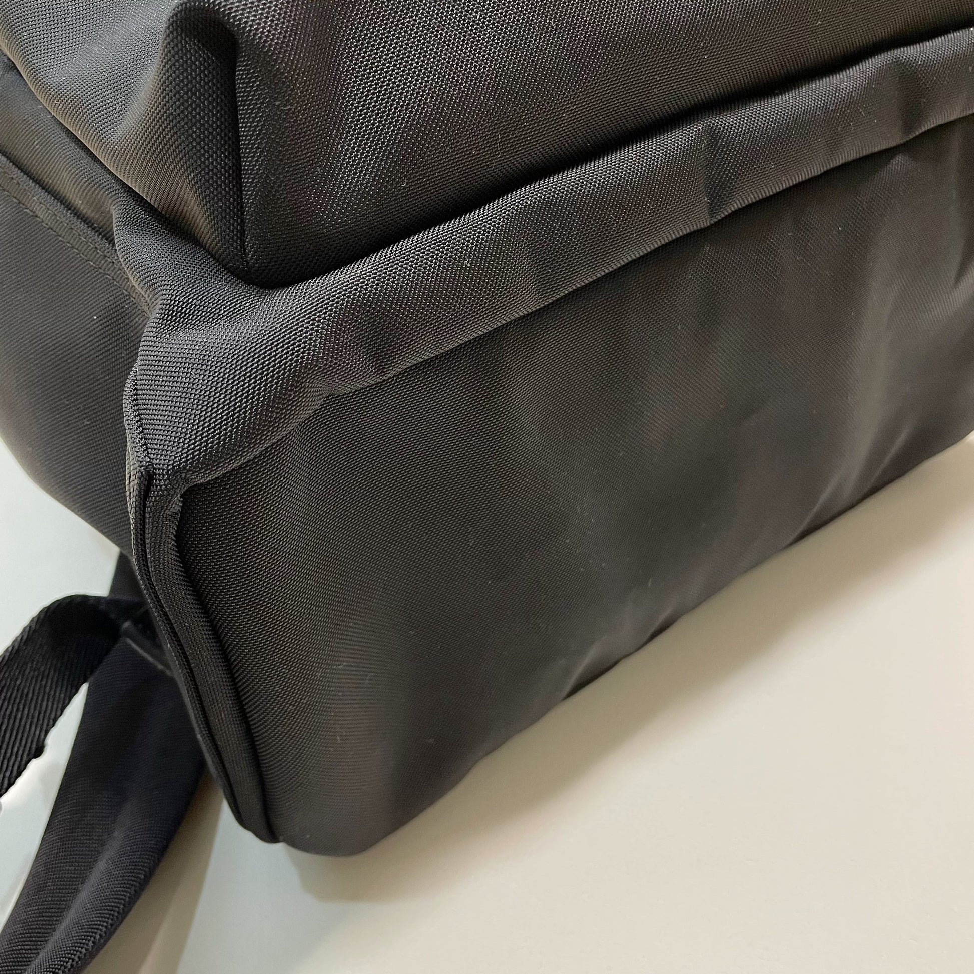 撥水加工を施したブラックナイロンを使用した、シンプルで実用性の高いバックパック。