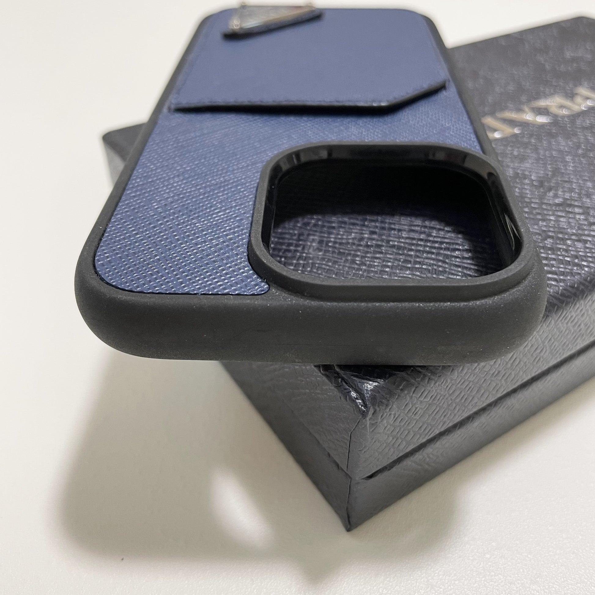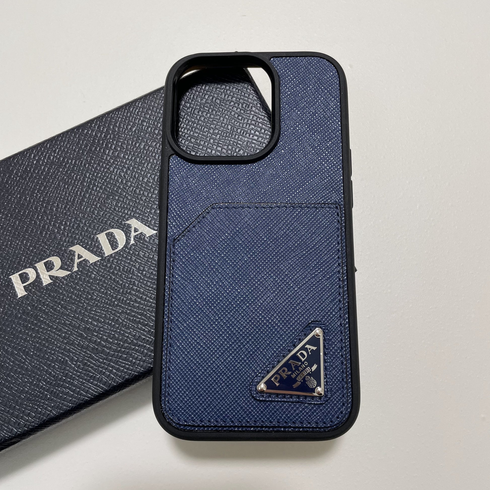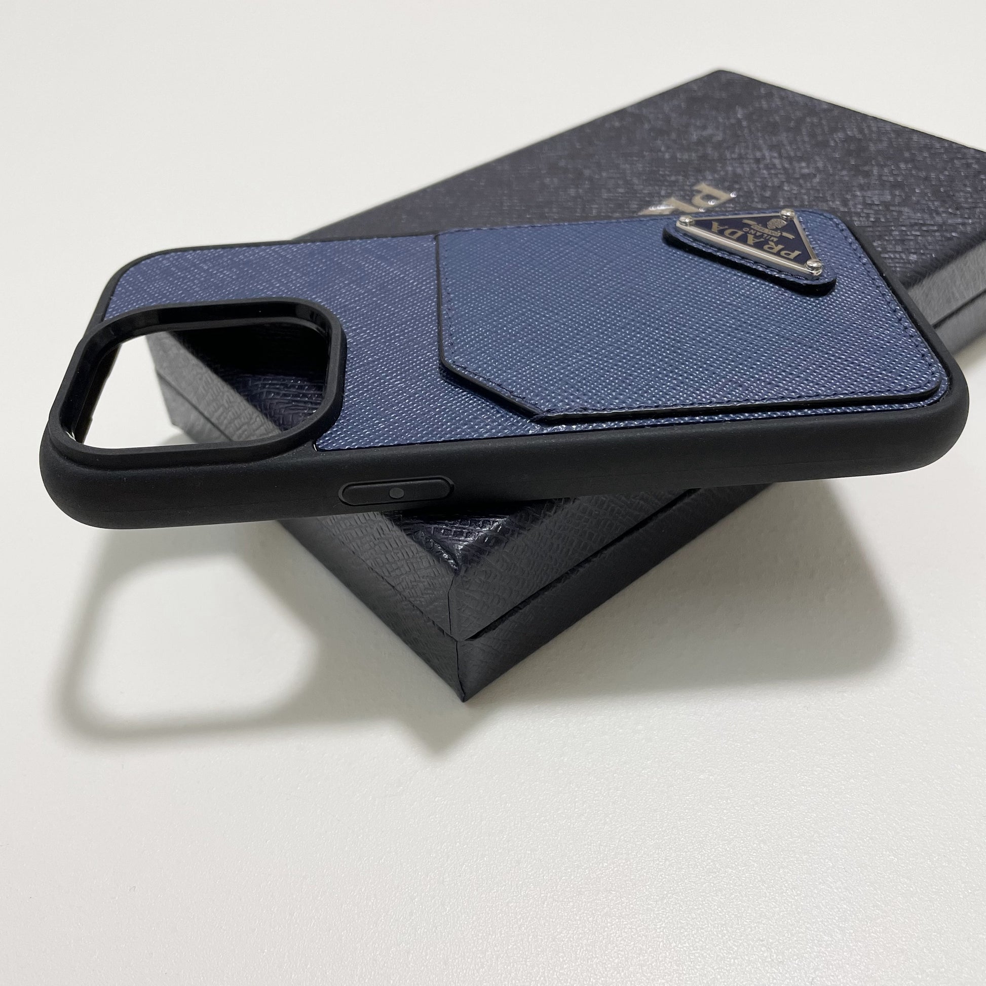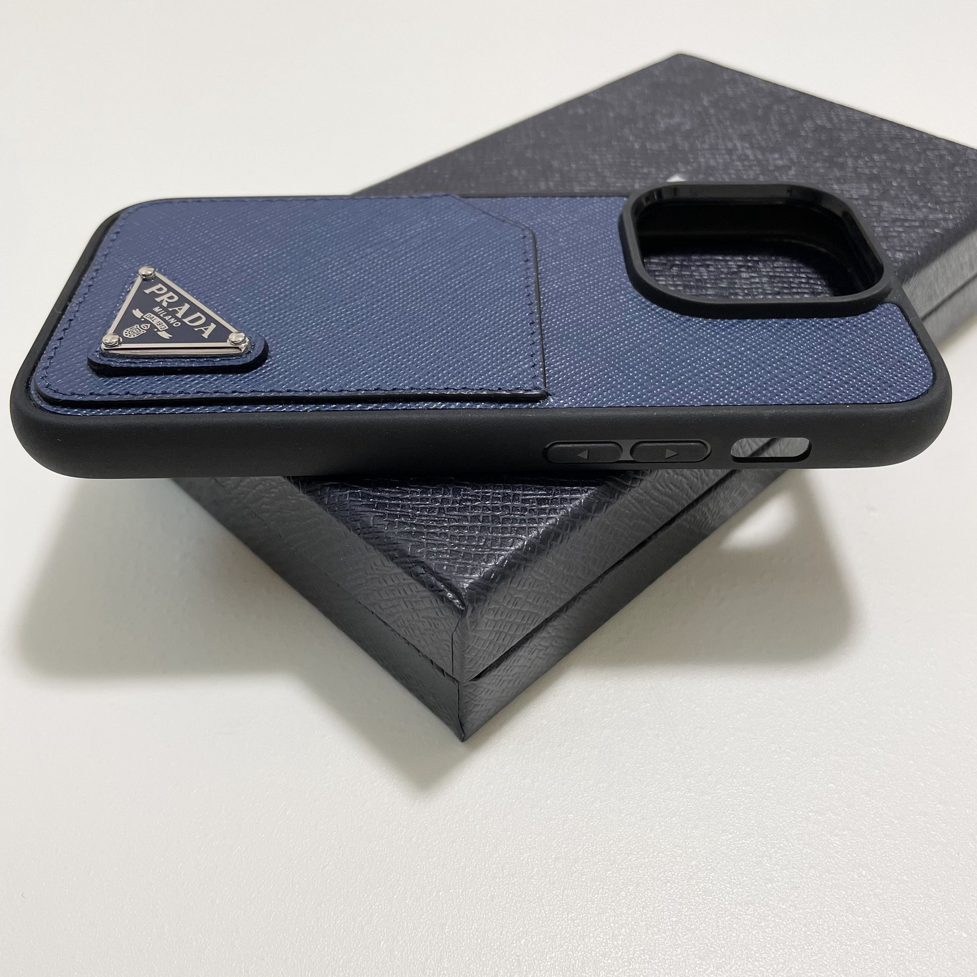 PRADA プラダ iPhone14 Pro ケース スマホケース ロゴ レザー シンプル 紺 ネイビー サフィアーノ 新品未使用