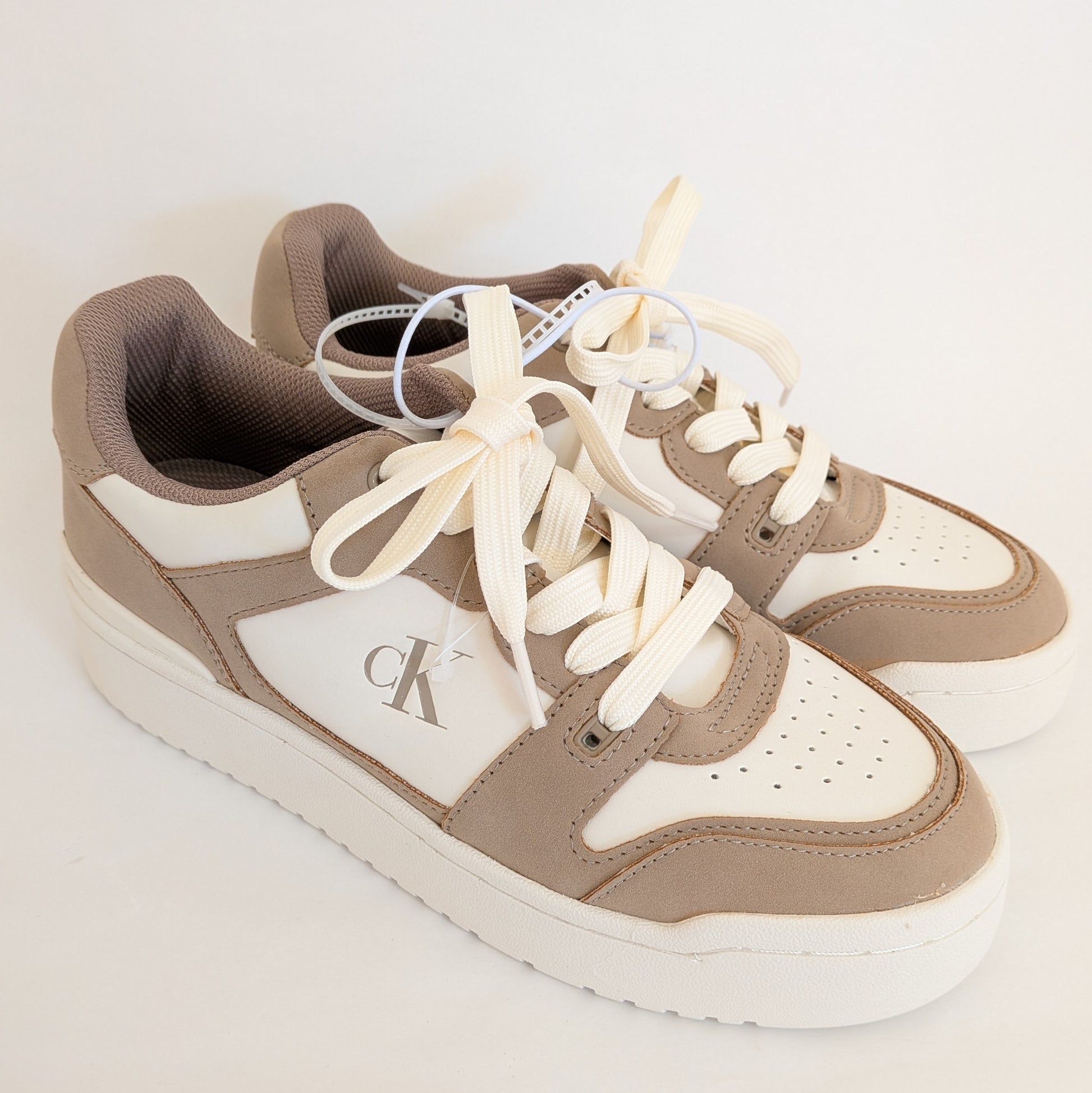 カルバンクラインらしい洗練された存在感が光る、魅力あふれるベージュスニーカーです。