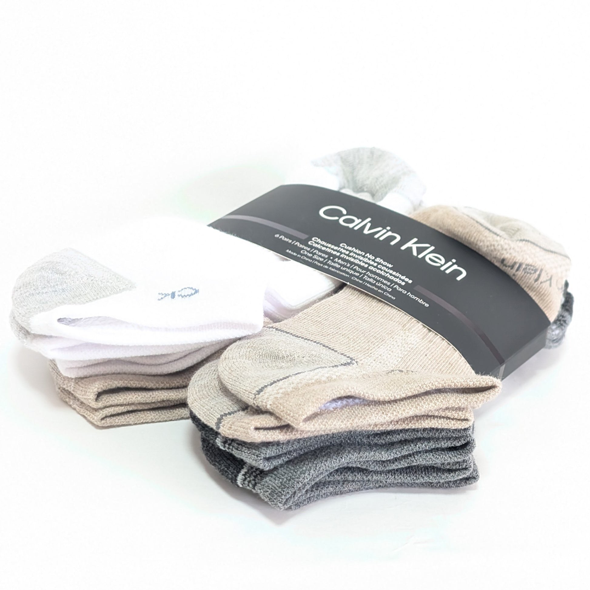 Calvin Kleinのクッション入りノーショーソックス6足セットは、ベージュとホワイトの落ち着いたカラーが魅力。