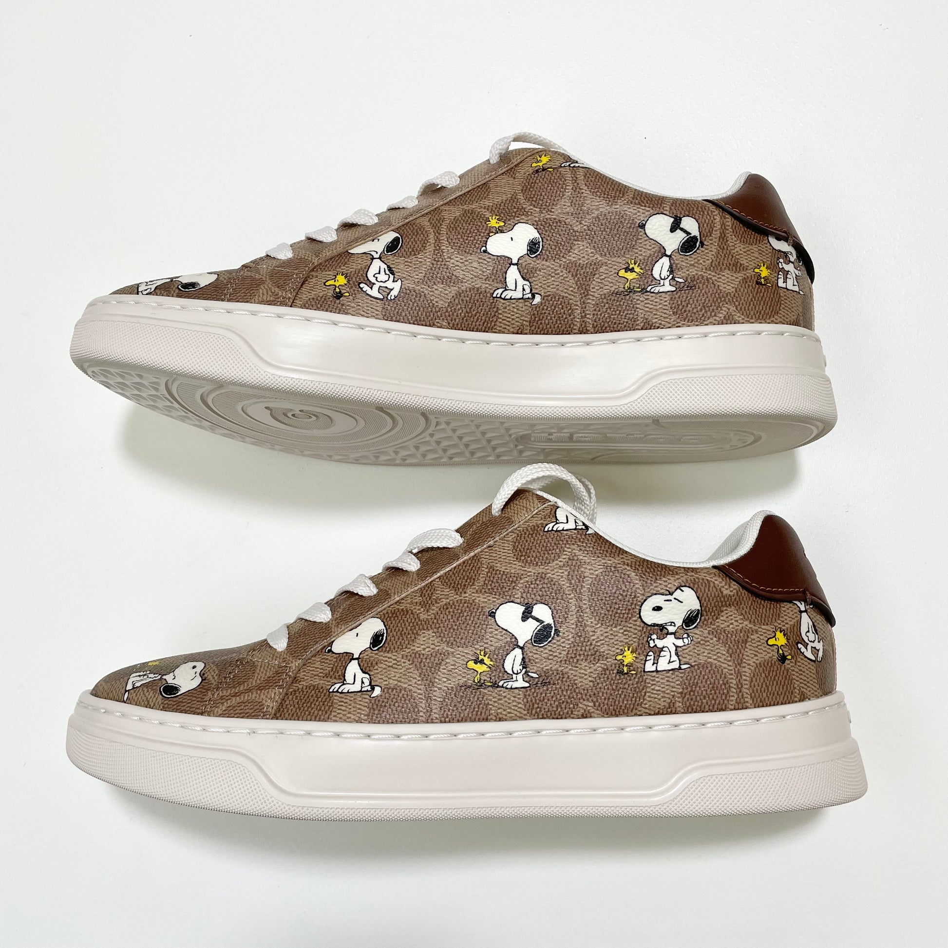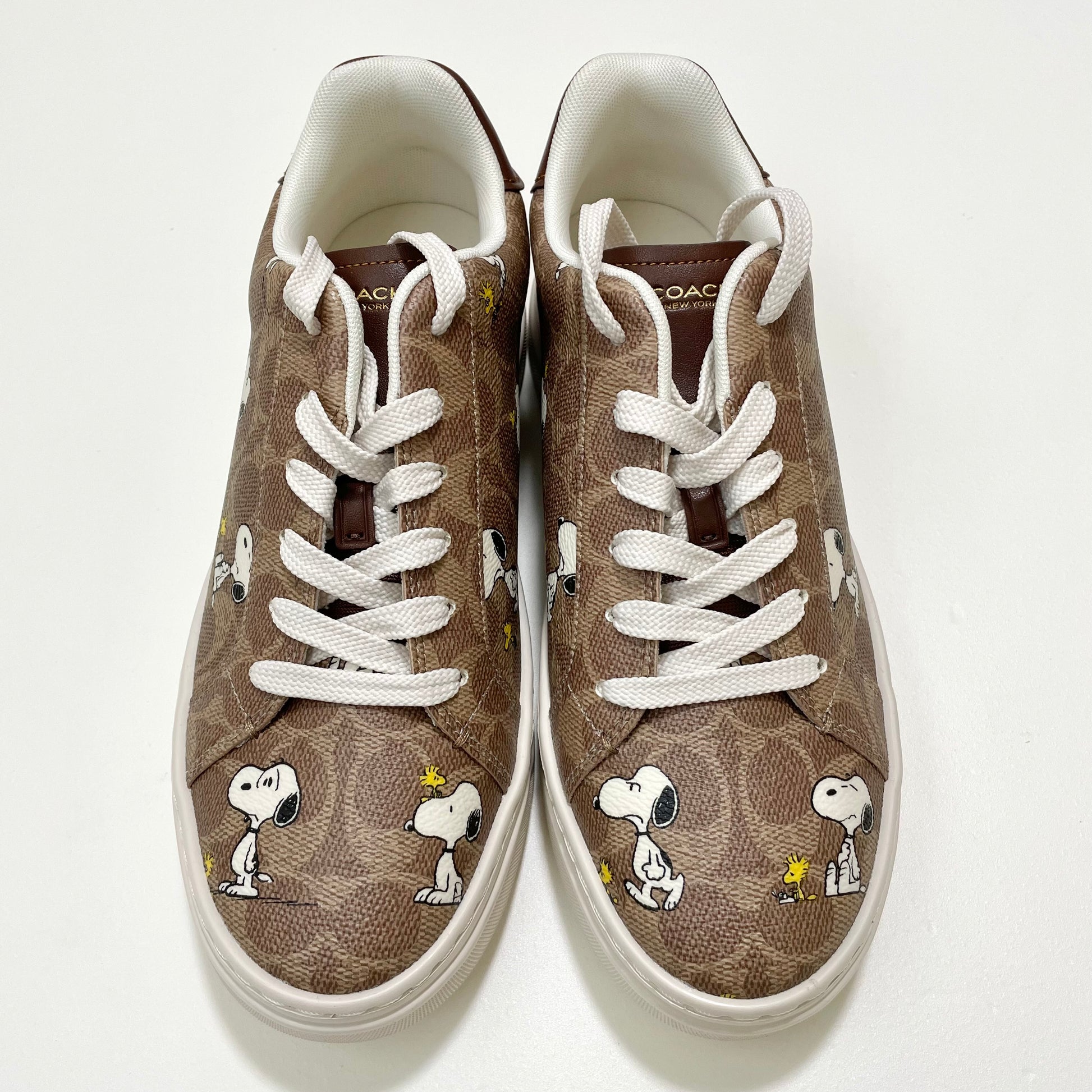COACH コーチ PEANUTS SNOOPY スヌーピー コラボ スニーカー 26.5cm シグネチャー レディース ブラウン