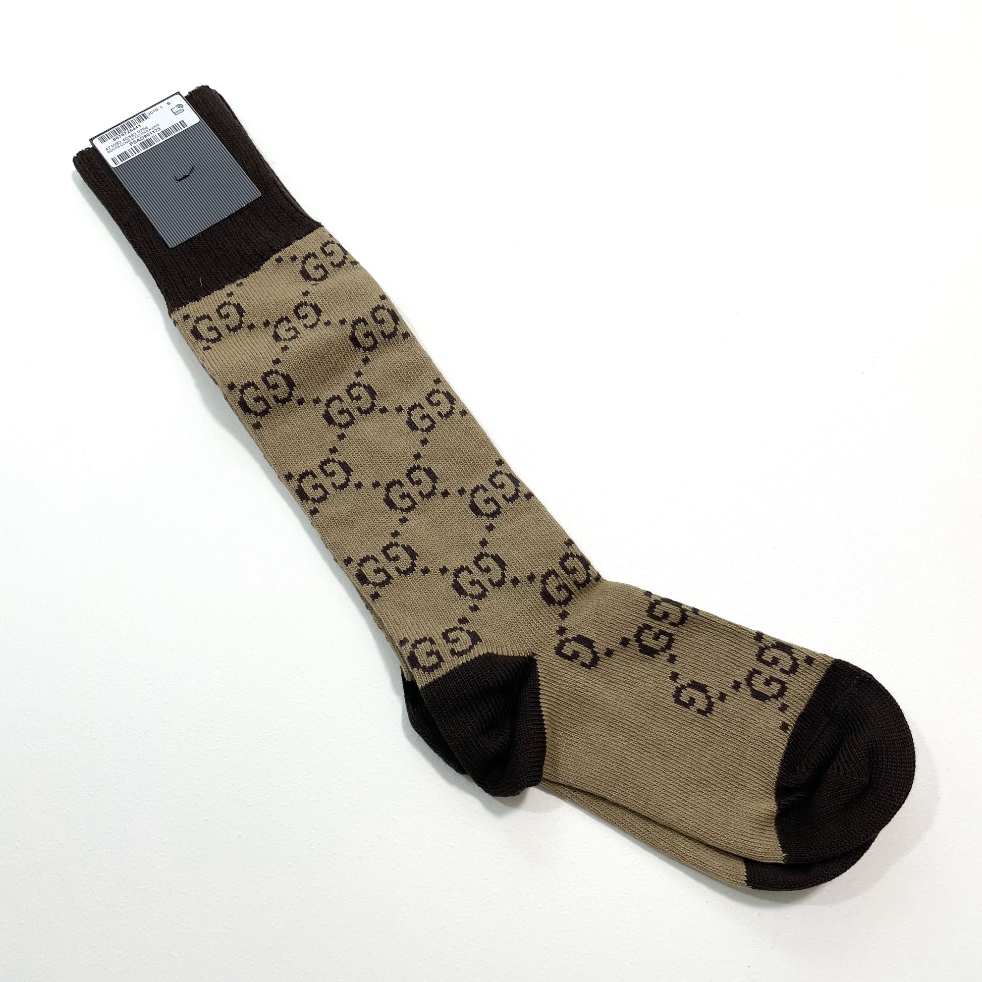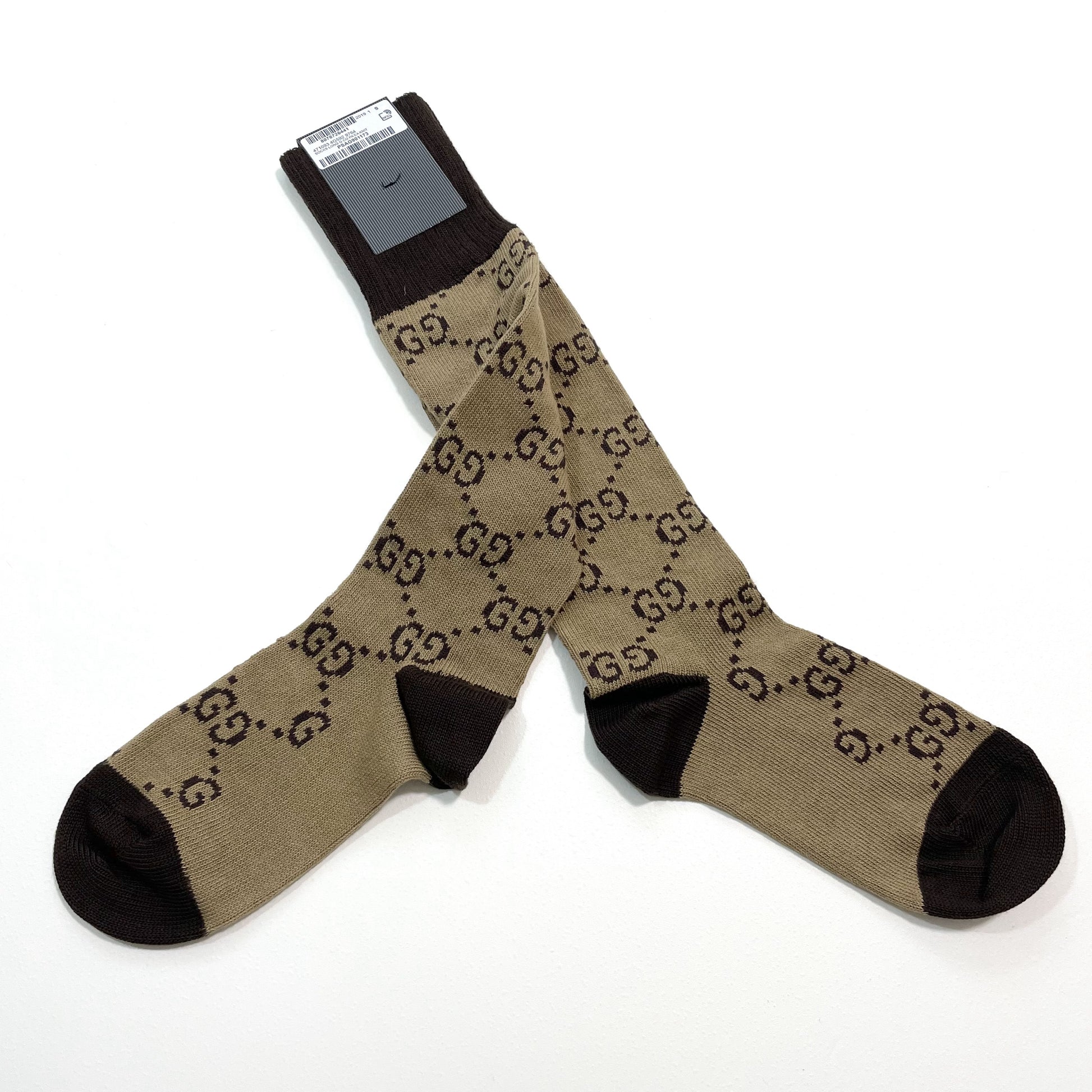 GUCCI グッチ 靴下 S 22cm 23cm 24cm ソックス ロング メンズ レディース 総柄 茶 ブラウン 新品未使用