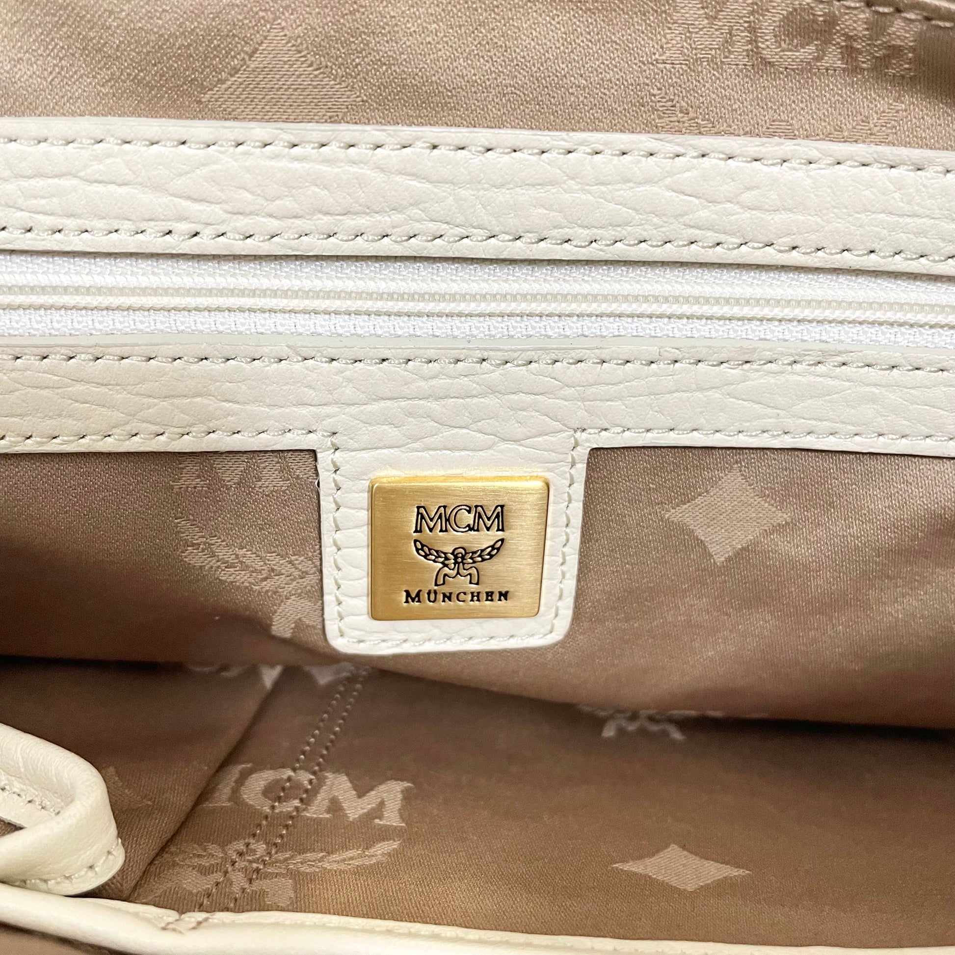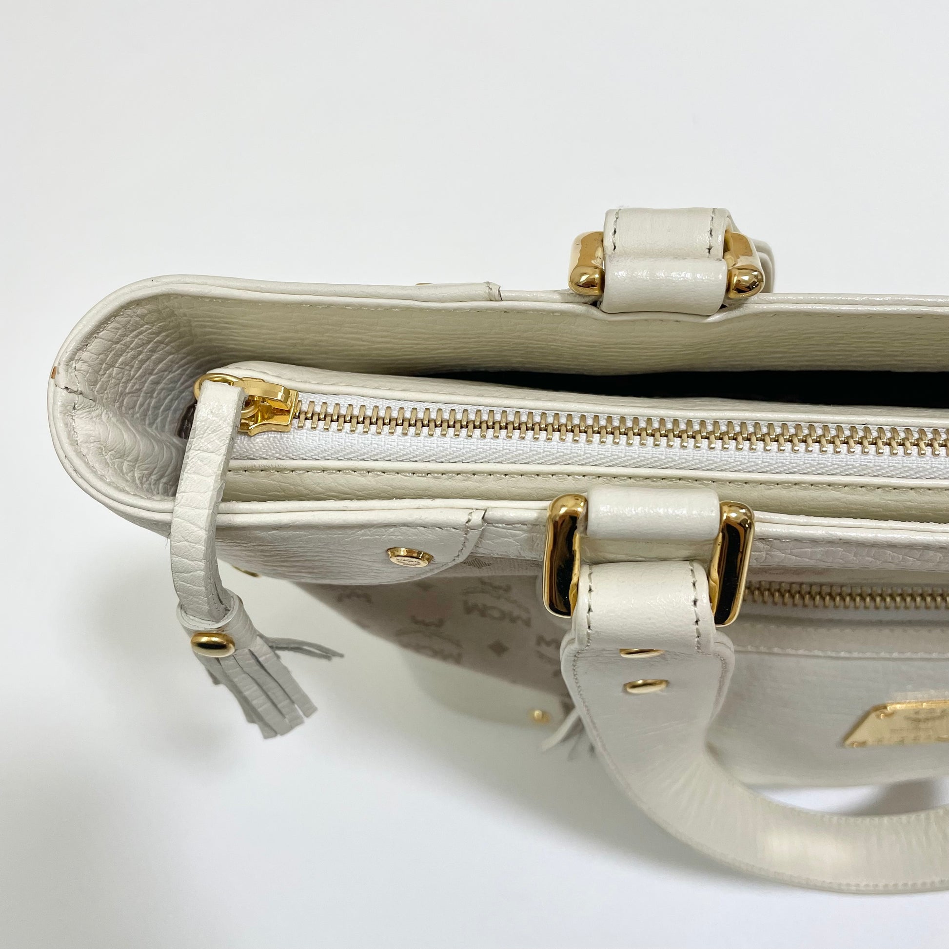 MCM エムシーエム ハンドバッグ 総柄 レディース ロゴ 白 ホワイト ベージュ 美品 中古