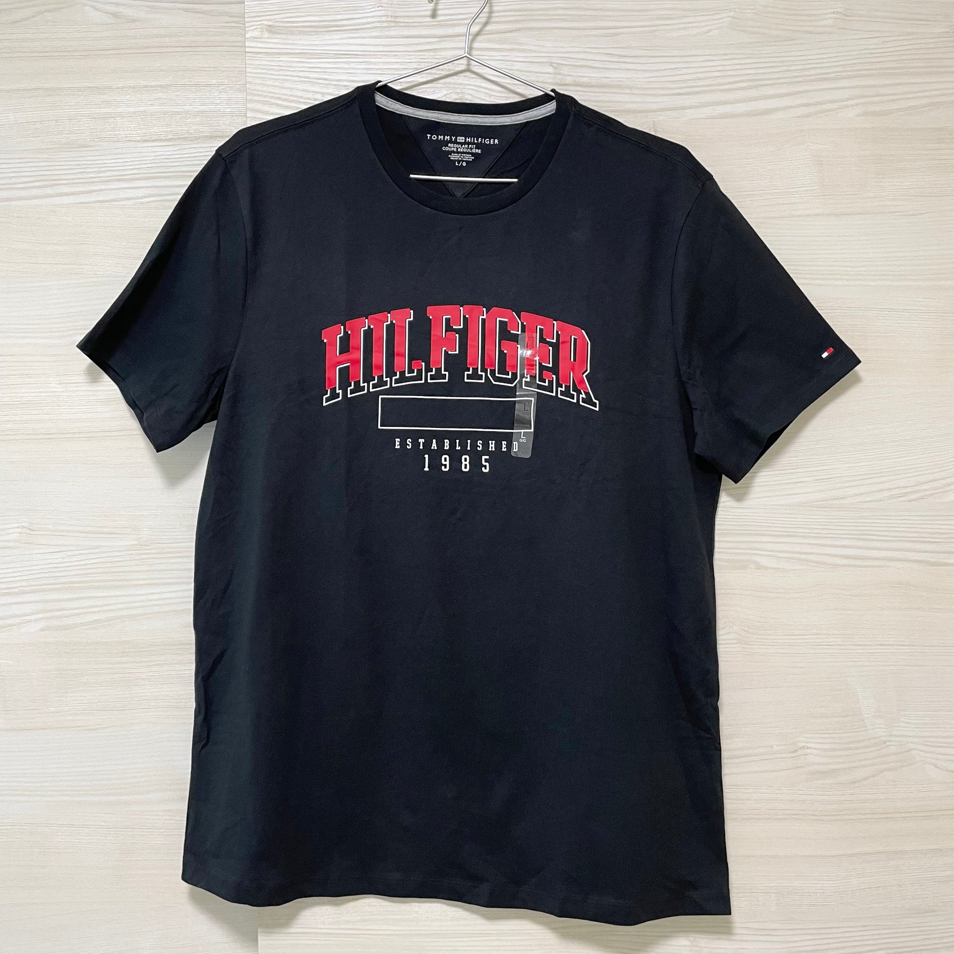 TOMMY HILFIGER トミーヒルフィガー Tシャツ L カットソー 半袖 プリント ロゴ シンプル メンズ 綿 ブラック