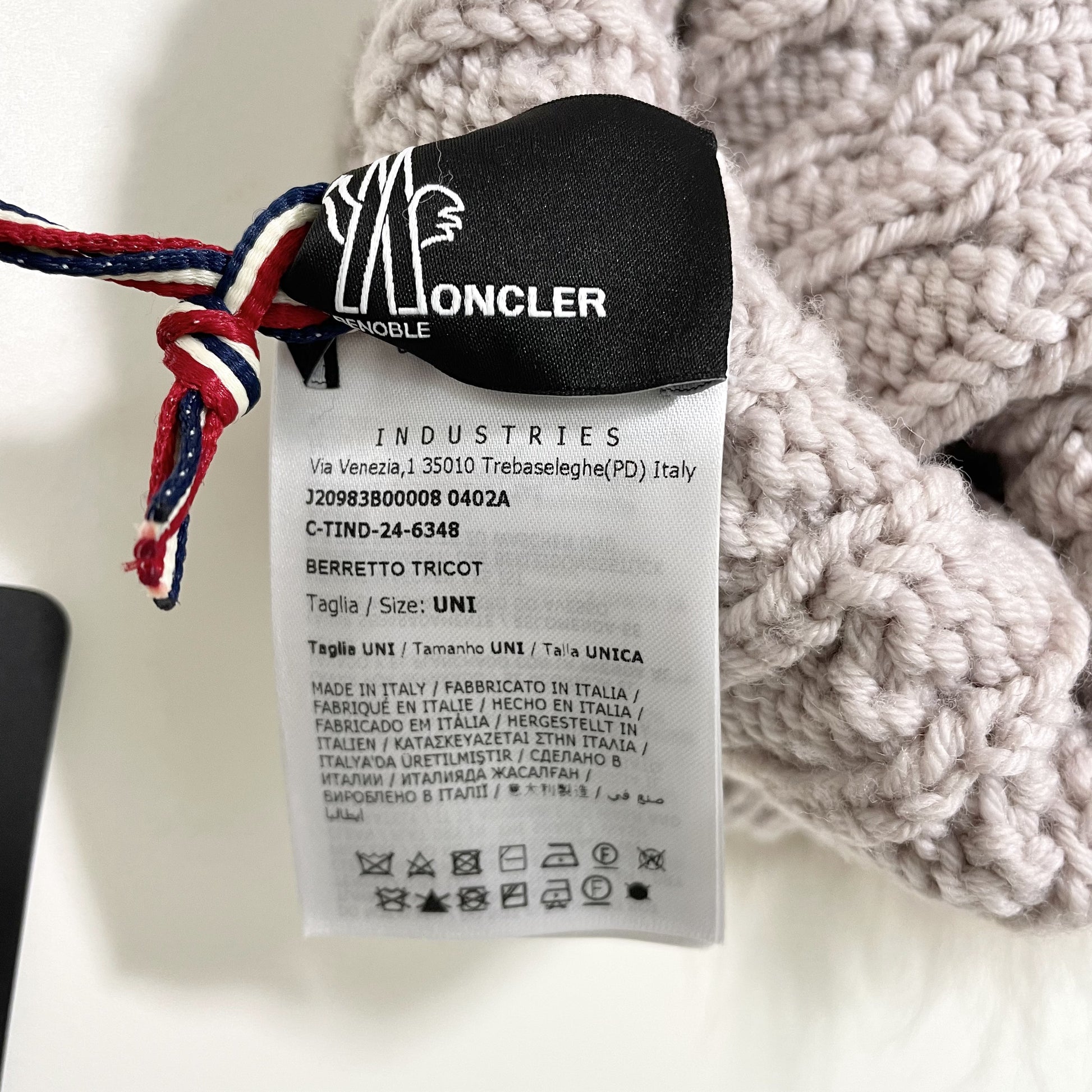 MONCLER モンクレール ニットキャップ ニット帽 帽子 ワッペン ファー 可愛い 冬 レディース ベージュ 新品未使用